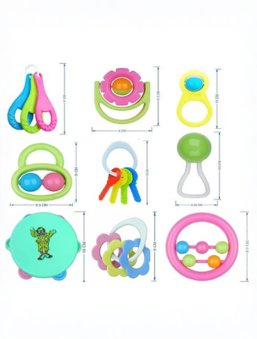 baby’s hand. Our brightly colored teethers are equipped with rattle balls to provide