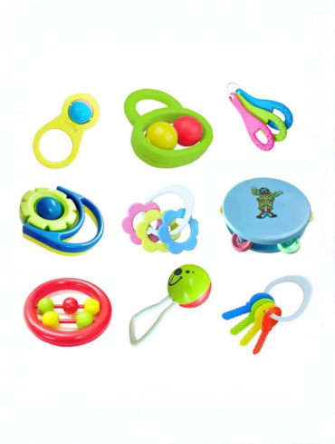 baby’s hand. Our brightly colored teethers are equipped with rattle balls to provide